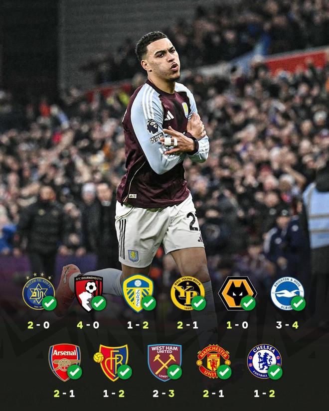 埃梅里豪取11连胜!维拉2-1切尔西,替补21分钟双响,差阿森纳3分